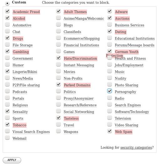 I've configured OpenDNS to filter out the content that I don't anticipate ever changing my mind about. I don't think there's any reason for my family to be able to access dating sites, gambling sites or porn sites (Figure 2). Although not perfect, the OpenDNS people do a pretty good job of filtering this content without me having to do any testing myself. When that kind of testing fails, it has the potential for some really awkward moments—I'd just assume pass.
