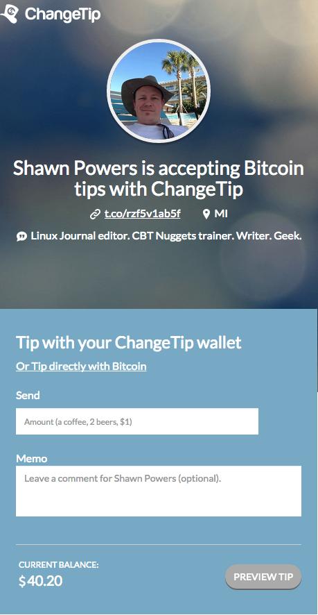 With its seamless integration to Coinbase, ChangeTip makes actual financial transactions secure, simple, and did I mention simple? Check it out today at changetip.com, or visit my personal page at shawnp0wers.tip.me. And, if you want incentive to try it out, I originally planned to include a bunch of “one-time links” in this article that could be claimed for $1 each. It turns out that the one-time links expire after a week. So although it might have been a great April Fool's joke, I really want to give everyone a chance to claim some tips, so keep reading!