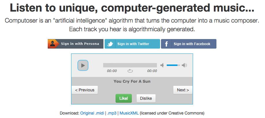 Although it might be the downfall of civilization and might mean the unemployability of creative folks like myself, you can taste the computer's creativity yourself. There's also an app in the Google Play store if you want some Skynet music in your pocket: play.google.com/store/apps/details?id=com.computoser.