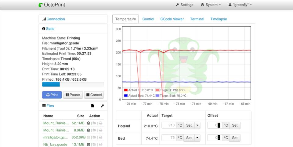 This is the last article in a four-part series on the current state of 3D printing. In the first part, I gave an overall introduction to differences in 3D printing since I wrote my original articles on 3D printing three years ago. The second piece focused on advances in 3D printing hardware, and the third column covered 3D printing software. In that last article, I mentioned one particular piece of 3D printing software, OctoPrint, that I felt warranted its own article, so I am devoting this final article to how to set up and use OctoPrint.