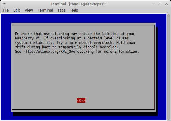 After reading the warning, press Enter to acknowledge it (Figure 3). It's important to know that overclocking can make weird things happen to your RPi, so be careful.