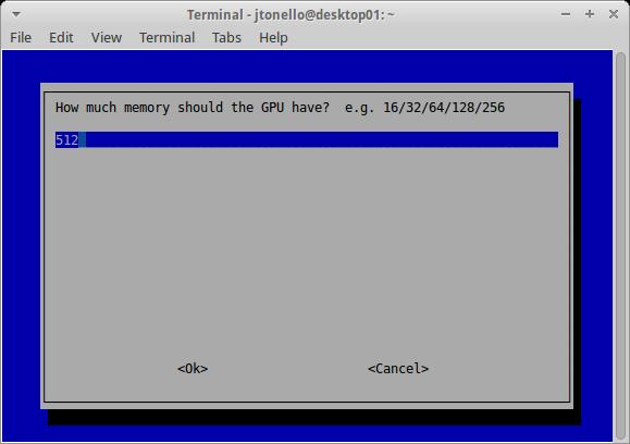 Now you can make the modification that will make the biggest difference for this project—changing how the RPi allocates its 1GB of on-board memory: