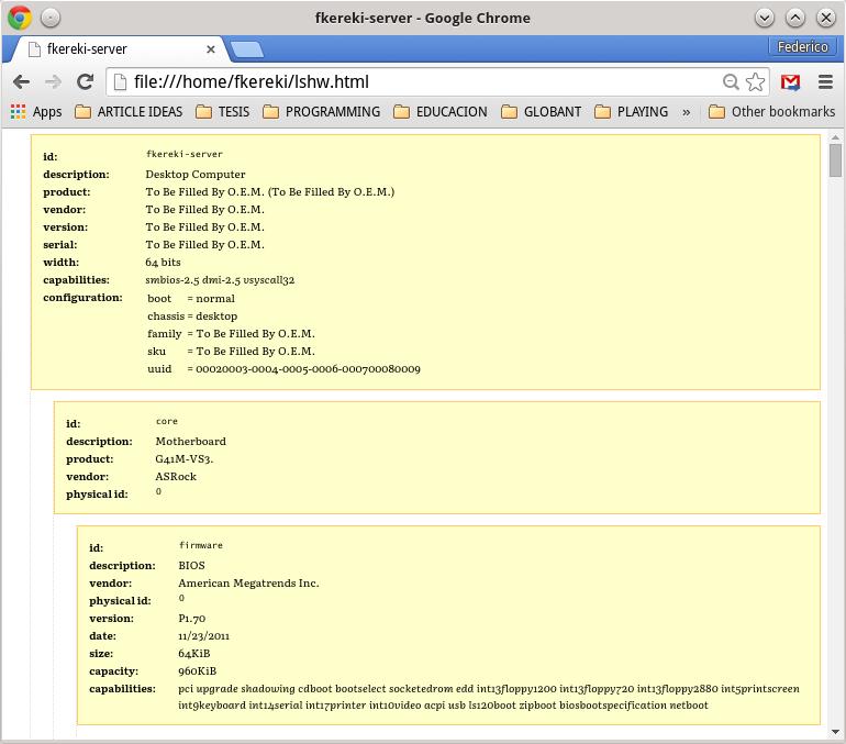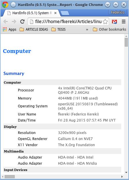 Figure 6. The hardinfo command can produce an HTML or text report describing your complete system.