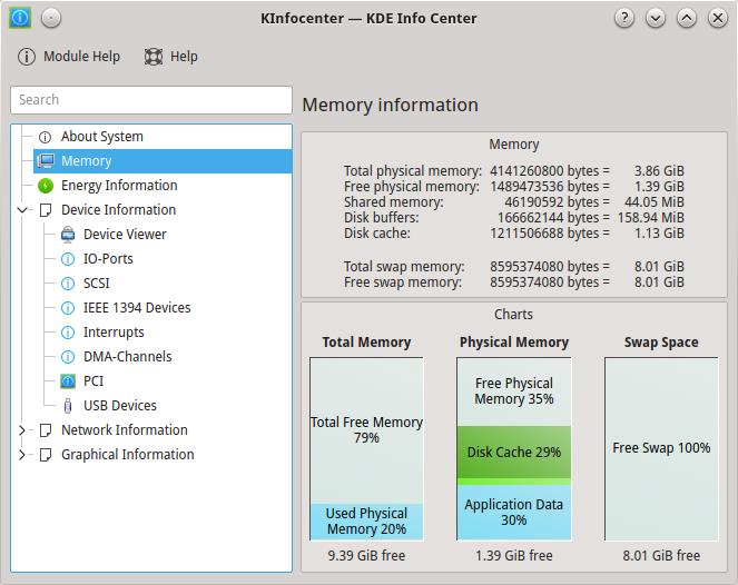 Let's end with KDE's own kinfocenter. This utility (see Figure 7, which shows RAM details for my machine) is similar to the previous tools I've been describing, and it offers a left pane with a tree with all available options and a right pane with more details on the chosen option at the left.