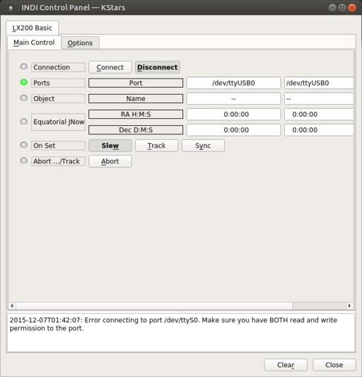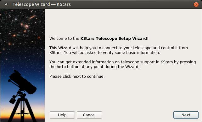 The guides section defines what extra information is displayed, such as constellation lines, names and the Milky Way. The INDI (Instrument Neutral Distributed Interface) section controls how KStars talks to your connected telescope. You can pull up the telescope wizard by clicking on Tools→Devices→Telescope Wizard.