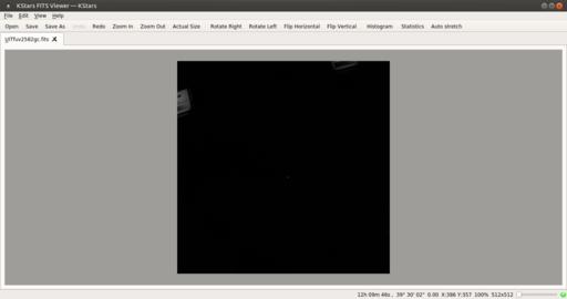 Several tools are available to work with the data in the image. You can look at the basic statistics of the image, including the width, height, maximum, minimum and mean of the pixels. You can pull up a histogram, showing the frequency spread of the image data. The View menu item includes several more tools where you can equalize the image, pass it through a high contrast filter or apply an auto stretch. There is even an entry to mark any stars that KStars can identify automatically.