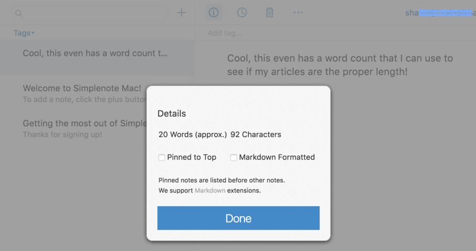 To be completely honest, Simplenote doesn't do nearly as many things as Evernote does; however, that seems to be by design. It is a “simple note” program, and it handles simple notes extremely well. Along with syncing to other devices, it also allows you to publish notes publicly on the web so others can see them (for example, simp.ly/publish/L75FXz). On top of that, it allows you to share notes between a group of users simply by tagging the note with their email addresses.