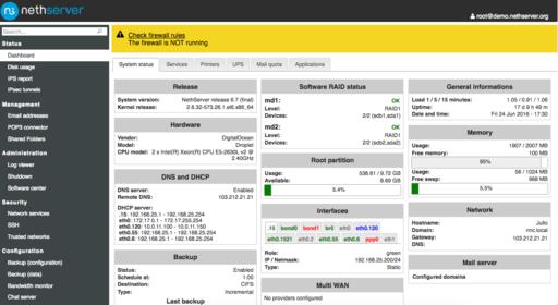 Tons of features are available in the free community version of NethServer, but a few of the more advanced features require you to purchase a license. If you'd like to give NethServer a try, you either can download the ISO, install the repository on your existing server, or try the live Docker-based demo! Check it out at www.nethserver.org/demo-running-on-docker.