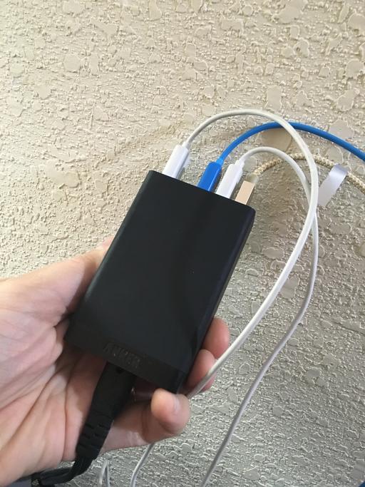 The only other things I carry with me, hardware-wise, are power-related. I have a 12v inverter for the car that gives me 120v AC on the go. I also have a big 24,000mah lithium ion battery (I got it from woot.com on special) charged up and ready for dying devices. My Anker five-port USB charger (Figure 4) is still the charger I use for mobile devices, and with that combination, I've never run short on juice. I kind of want to get a portable solar panel so I can top off my batteries during sunny days, but I don't really need that. I just want it!