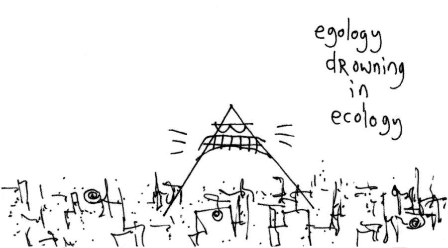 That same year, Hugh and I brainstormed the future of business for a (now gone) open-source company we both consulted. As happens with Hugh, this generated lots of great illustrations. Figure 2 shows Hugh's drawing of a company like the one above, embodying what he called “egology”.