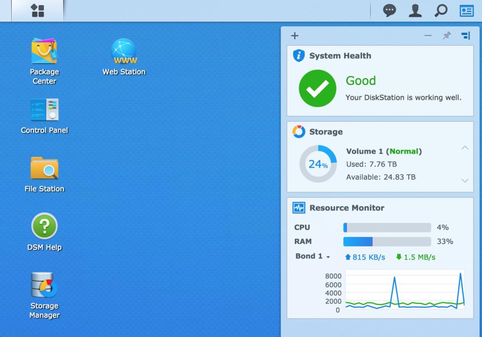 Figure 2. The dashboard shows you information on your NAS at a glance. I'm slowly building my collection after the horrible data loss I suffered a few years ago.