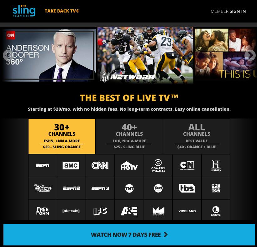 Figure 1. Sling TV has been around a long time, but the lack of DVR and video glitches make it less than stellar in my experience.
