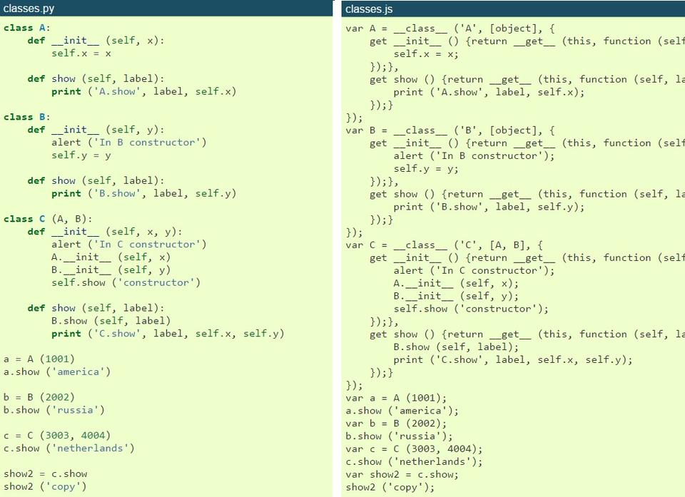 Since we already had separated computation and visualization, having the latter run in a browser seemed doable. Not without reason, we'd chosen something ubiquitously supported like OpenGL. While getting OpenGL to run in a browser proved simple, our interactive 3D modelling Python code certainly wasn't. We did some experiments in JavaScript, but things like class-based object orientation and multiple inheritance were embedded so deeply in our thinking, that using JavaScript for this sent us back to square number one. So we looked into some alternatives, most notably Pythons that could run in the browser. We found several, some requiring special browser plugins, others producing slow, bulky code, yet others lean and mean but lacking some of the basic Python features we needed.