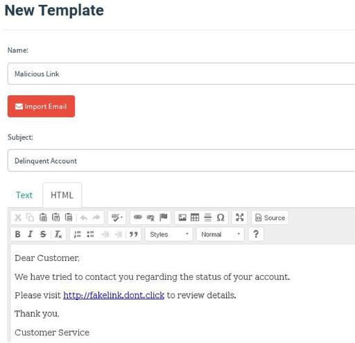 If you choose to use a custom email tailored after a real-world phishing message, do not directly use anything from the web. You can scrub those messages with a fine-tooth comb, but the last thing you want is to miss something that inadvertently brings malware onto your network. My advice is to transcribe any examples you want to use. Never copy and paste. Transcribing is the only sure-fire way to avoid accidentally using any malicious code in your testing. Thoroughly scan any images you want to download and use. Be cautious in using images that are not your own.