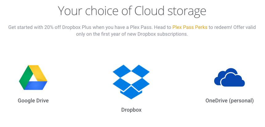 If you pay for the Plex Pass subscription, you also have the option to run plexmediaserver in the cloud at no additional charge. I'm a lifetime subscriber to Plex Pass, so if I wanted to offload all the transcoding to the Plex servers, I could do that. The only problem with running Plex in the cloud is you have to store all your media in Dropbox, Google Drive or OneDrive (Figure 1). Since that storage isn't free, you still end up paying. The upside is transcoding will work without the need to buy a powerful server. It's certainly an easy way to try Plex.
