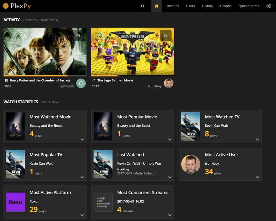 One area Plex is lacking is in the log department. That might seem like a strange complaint, because there is an error log if something goes wrong. But since I have a server and share access with a few friends, I really like to know what my server is doing. My wife thinks it's creepy that I have a log of everything everyone watches, but my concern is more with how well my server performs with multiple streams and so forth. Thankfully, there's a third-party open-source project specifically for keeping statistics about the Plex server. It's called PlexPy.