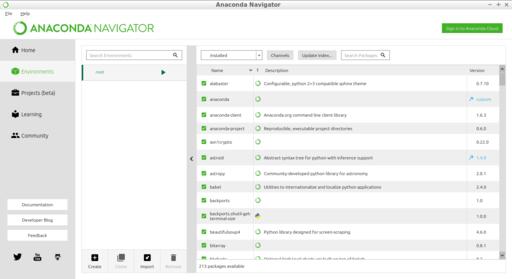 All of these commands have been managed on the command line, but not everyone is comfortable working that way. For those people, Anaconda includes the Anaconda Navigator. You can start it with the command anaconda-navigator.