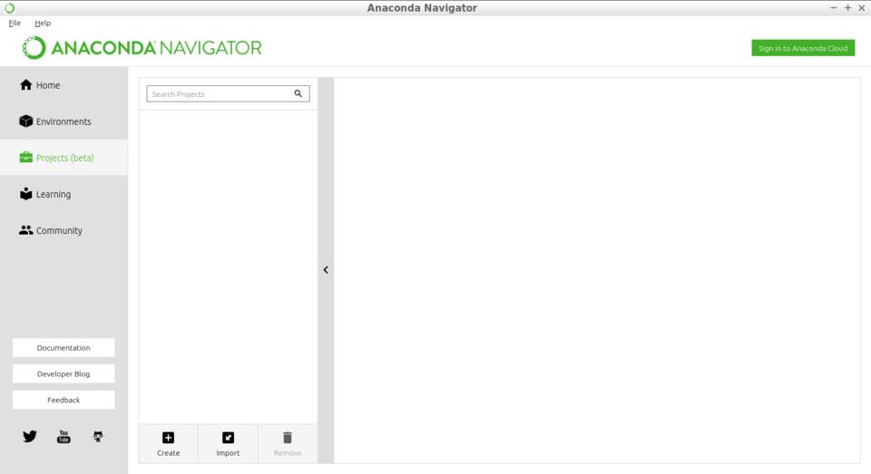 There is a third page, currently in beta, which manages projects. Projects are a way of organizing larger pieces of code and sharing them with others. Sharing is made easier with the Anaconda Cloud. Once you have an account on Anaconda Cloud, you can upload projects, environments, packages and jupyter notebooks. Once they have been uploaded, you can share them with other people around the globe much more easily. Although you can log in and work with the Anaconda Cloud in a web browser, the Anaconda Navigator allows you to log in directly from there and be able to interact with your materials stored online.
