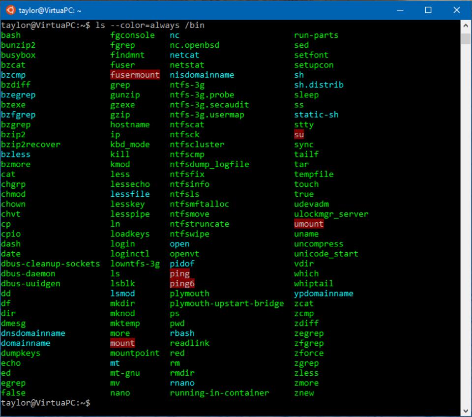 Ubuntu or Microsoft, someone has set it so that “white” is actually a very light grey, so the results are quite attractive. The problem is, run a command that knows how to output in color, and things get pretty broken pretty fast, as you can see in Figure 3 when I tried an ls -a.