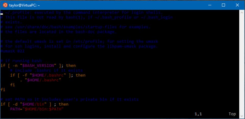 The only piece left that I kept hitting was the default ability of the vi editor (yeah, not emacs) to use color. Open up a file like my .profile, and it's out-of-control color soup and completely unreadable, as you can see in Figure 4.