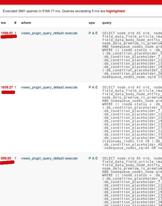 The Devel module (drupal.org/project/devel) implements a handy query log, which will print the list of all queries that were executed during a given request in the footer of your page. This allows you to identify slow database queries and optimize them. Doing some minor modifications of a query (view) or an index on a table will help you a lot in most cases.