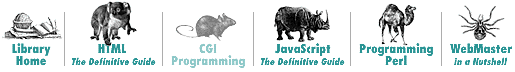 Web Reference Library HTML: The Definitive Guide JavaScript: The Definitive Guide Programming Perl WebMaster in a Nutshell